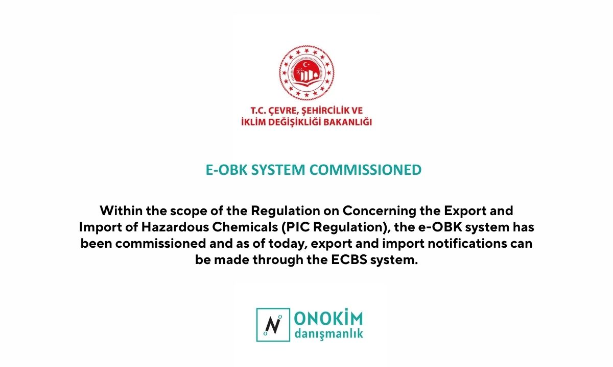 The e-obk system has been launched under the Regulation on Concerning the Export and Import of Hazardous Chemicals (PIC Regulation), published in the Official Gazette dated January 28, 2023, and numbered 32087. Starting today, export and import notifications can be made through the EÇBS system.